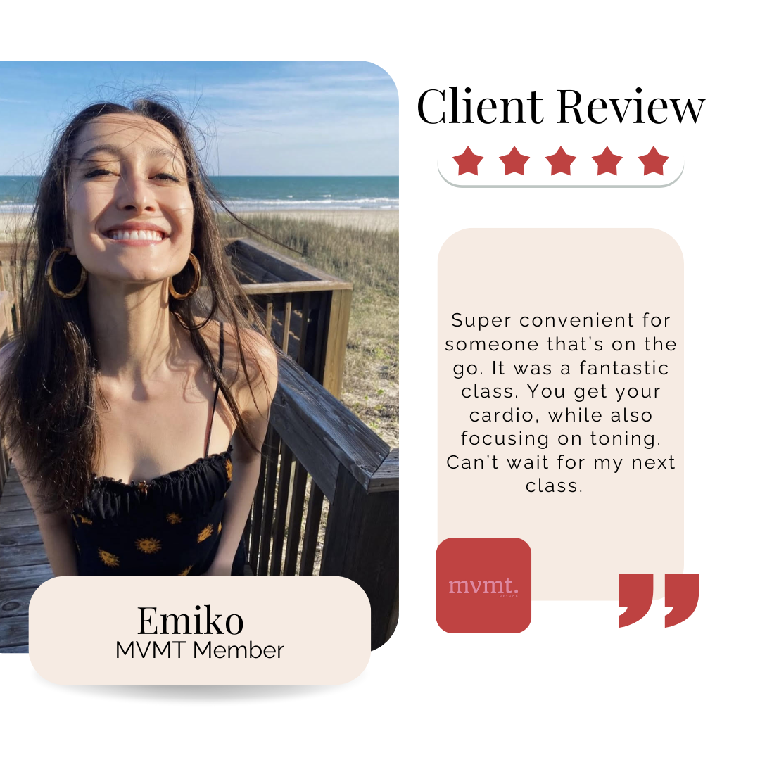 Being a certified Pilates instructor, I’m deeply devoted to the transformative power of mindful movement and its ability to renew both body and mind. I launched MVMT Method to offer a welcoming space where movement isn’t just about exercise — it’s a practice for connection, growth, and longevity.